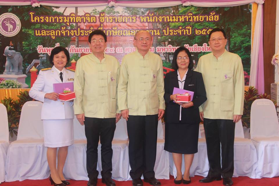 โครงการมุทิตาจิตและพิธีมอบกิตติบัตรให้แก่ข้าราชการ พนักงานมหาวิทยาลัยและลูกจ้างประจำที่เกษียณอายุงานในปีงบประมาณ 2559 ในวันที่ 7 กันยายน 2559 ณ ศาลาธรรม มหาวิทยาลัยเชียงใหม่ จำนวน 216 คน